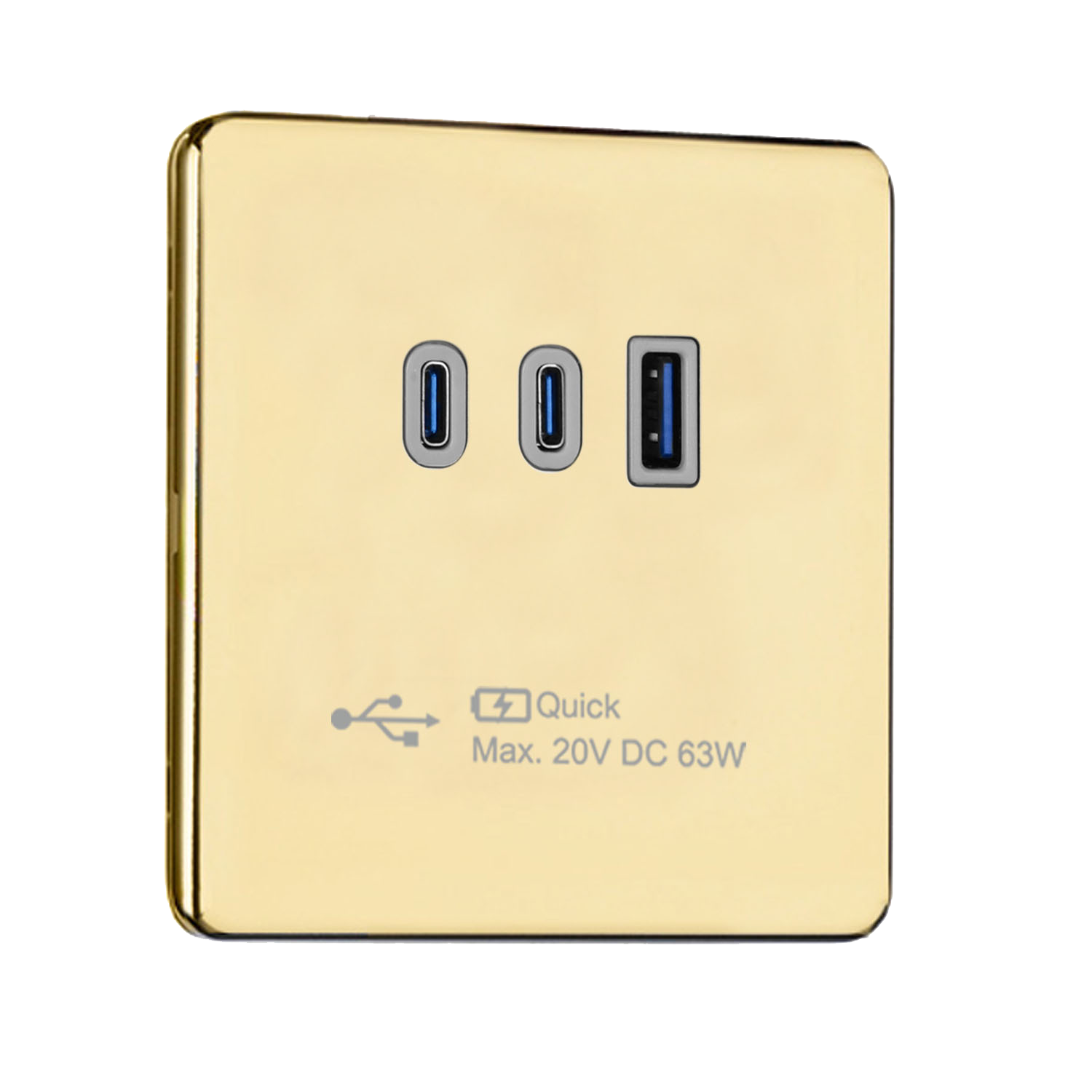 Slimline Screwless 1G Socket with Dual USB Quick Charger (4A – Type A + Type C)