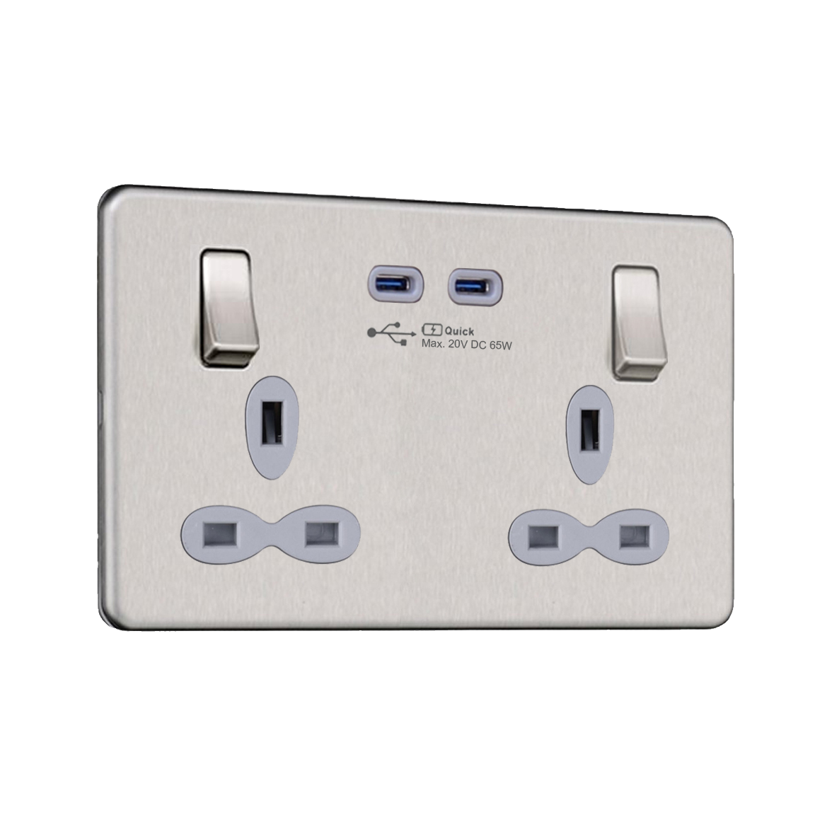 Slimline Screwless 13A 2G Switched Socket with 45W Synchronize Quick Charger of USB-A & C